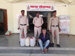खैरागढ़. उच्च अधिकारियों के दिशा निर्देश व खैरागढ़ थाना प्रभारी अनिल शर्मा के नेतृत्व में खैरागढ़ पुलिस द्वारा ग्राम सुतिया में अवैध रूप से कच्ची महुआ शराब का निर्माण एवम बिक्री करने वाले आरोपी जयप्रकाश बेरवंशी पिता स्व. मंगलदास बेरवंशी, उम्र 54 साल, निवासी ग्राम सुतिया को गिरफ्तार किया है।