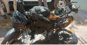 जानकारी अनुसार भिलाई निवासी युवक प्रतीक व्यास दिवाली की बधाई देने अपने मित्रों से मिलने शहर पहुंचा और संगीत विवि कैंपस एक परिसर में पल्सर एनएस 160 मोटर साइकिल खड़ी करके बातचीत कर रहा था महज दस मिनट में अचानक गाड़ी में तेज आवाज से आग लग गईं कोई कुछ समझ पाता उसके पहले ही आग के शोलों ने पूरी गाड़ी को अपने चपेट में ले लिया। घबराए युवकों ने गाड़ी में आग लगने की सूचना परिजनों को दी और तत्काल कंपनी से आदमी बुलाकर उसे भेजा। पता चला है कि उन्होंने वाहन जलने की सूचना बीमा कंपनी को दी है जिसके बाद पुलिस तक मामला नही पहुंचा है।