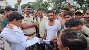 नाराज परीक्षार्थियों को शांत कराने पहुंचे एसडीएम।